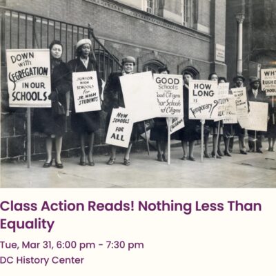 DC History Center 801 K St NW, Washington, United StatesJoin the DC History Center for a highly anticipated lecture from historian Tikia K. Hamilton about her new book Nothing Less Than Equality: The Battle over Segregated Education in the Nation’s Capital. School desegregation was not inevitable. Before the landmark case Brown v. Board of Education and its companion case in DC, Bolling v. Sharpe, Black Washingtonians built a remarkable school system for their […]