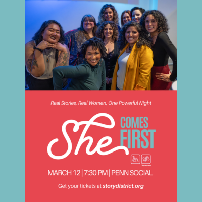 Penn Social 801 E Street Northwest, Washington, DCThis live storytelling show isn't polite. It's personal. She Comes First is Story District's annual night of true stories told by women - bold, funny, complicated, honest, and sometimes all at once. You'll hear voices across generations and backgrounds. It's not just a show. It's a space where real experiences get the mic and connection […]